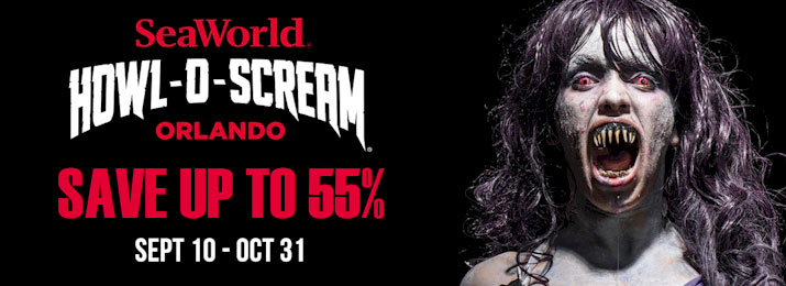 Howl-O-Scream | Orlando's Newest Halloween Event - SeaWorld Howl-O-Scream 2022 Save up to 15%! Scream your way through every night of of Howl-O-Scream at SeaWorld Orlando with unlimited visits, select nights Sept. 9 - Oct. 31, 2022. Valid for unlimited admission for one guest during Howl-O-Scream 2022 event nights. Event starts at 7 p.m. Not valid on Saturdays if Ticket with Blockout Dates is selected.