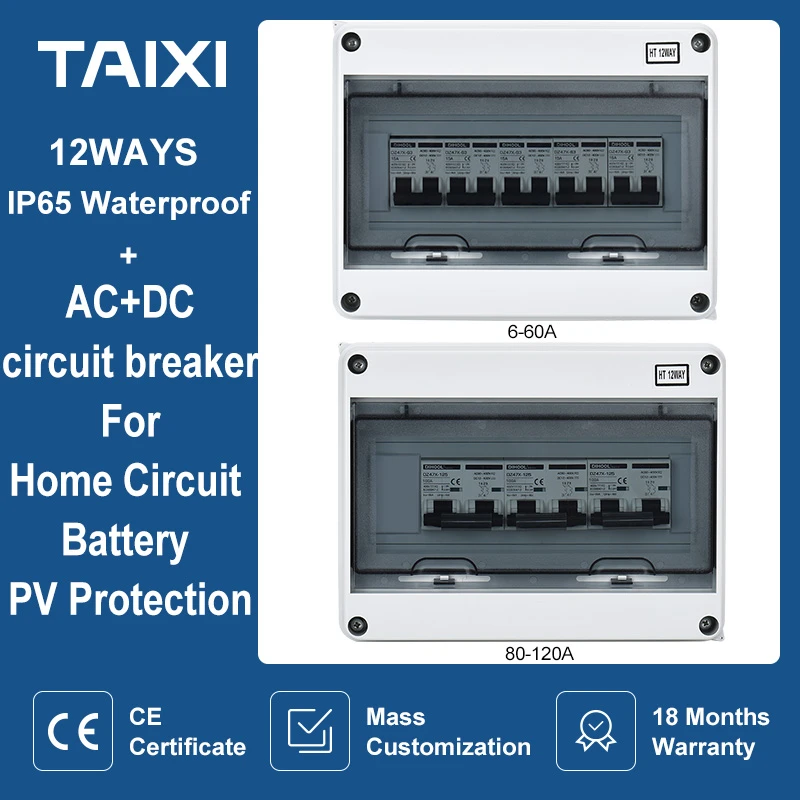 Solar Photovoltaic Battery PV Combiner Box DC Switch Miniature Circuit Breaker With Junction Box 12V 24V 48V 500V 1000V IP65