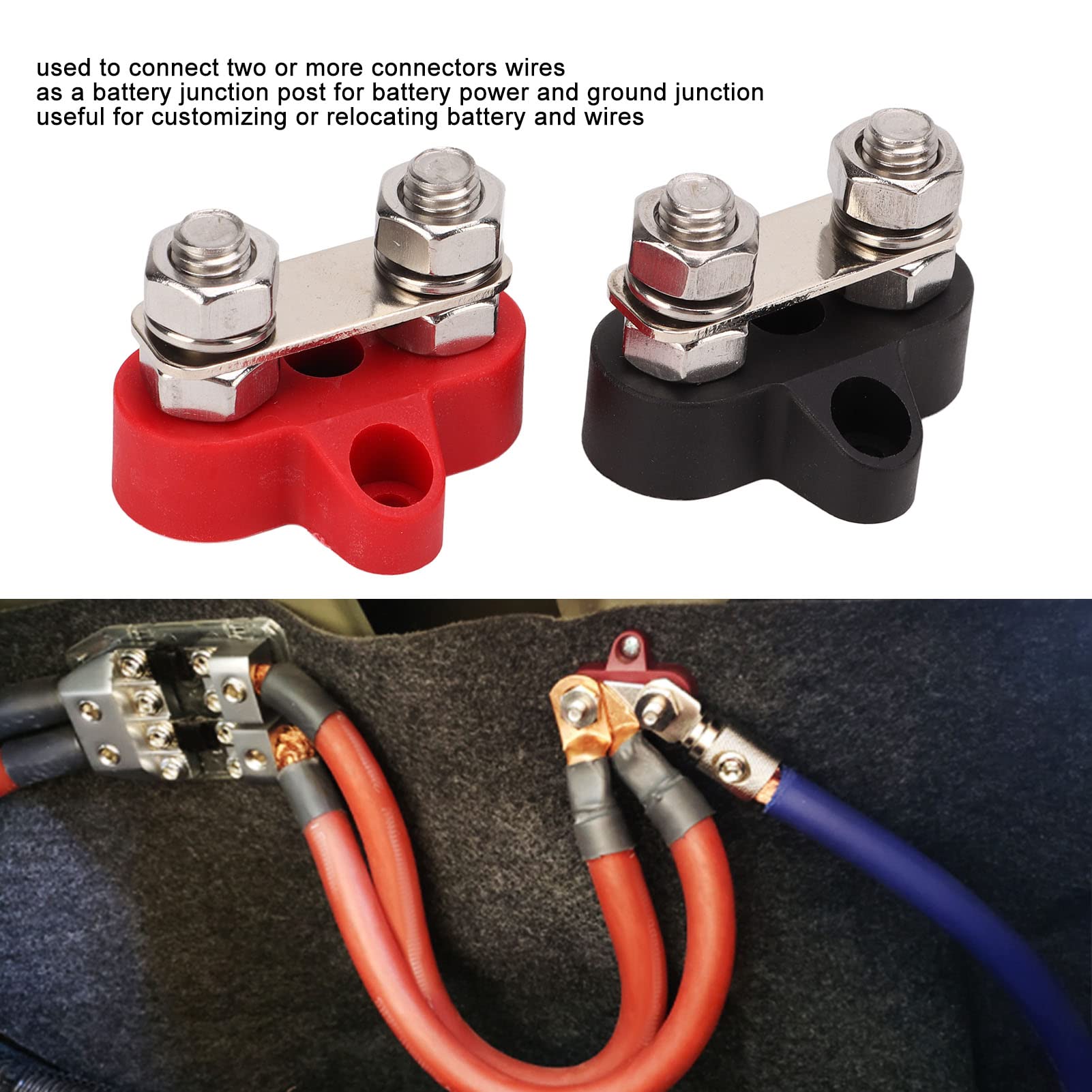 LC LICTOP 5/16” Stud Premium Remote Battery Power Junction Post Connector Terminal Kit,Pack of 2 (8mm Red & Black)